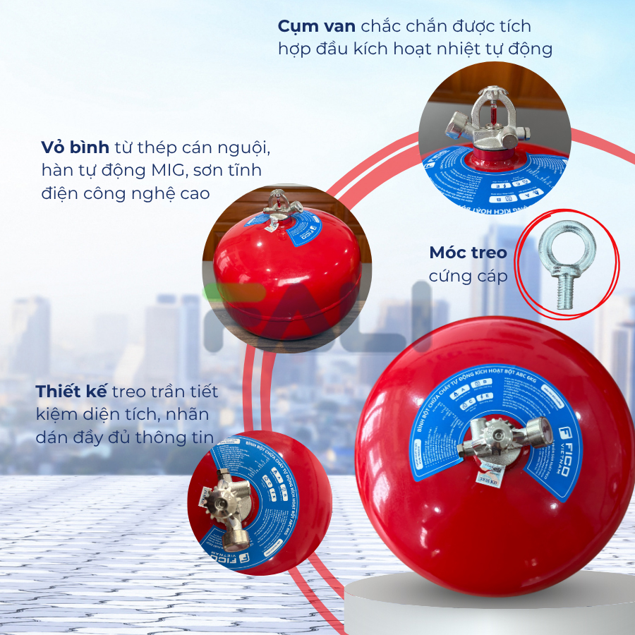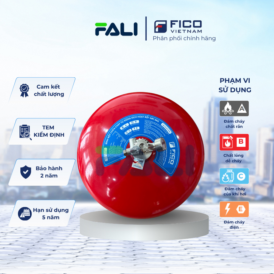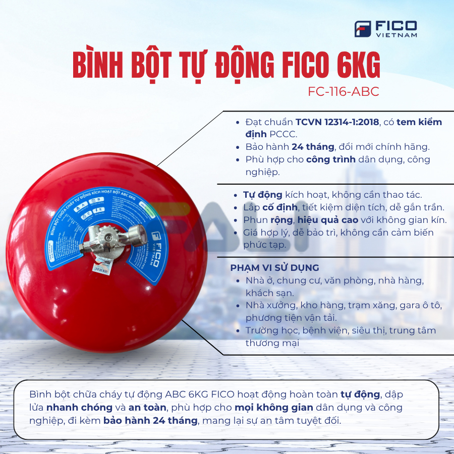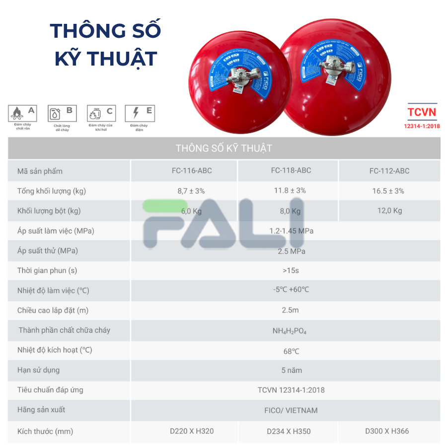 Nhờ thiết kế nhỏ gọn, cơ chế tự động thông minh và khả năng chữa cháy mạnh, Bình cầu chữa cháy tự động FICO FC-116-ABC 6kg mang lại giải pháp PCCC an toàn và tiết kiệm cho mọi công trình.